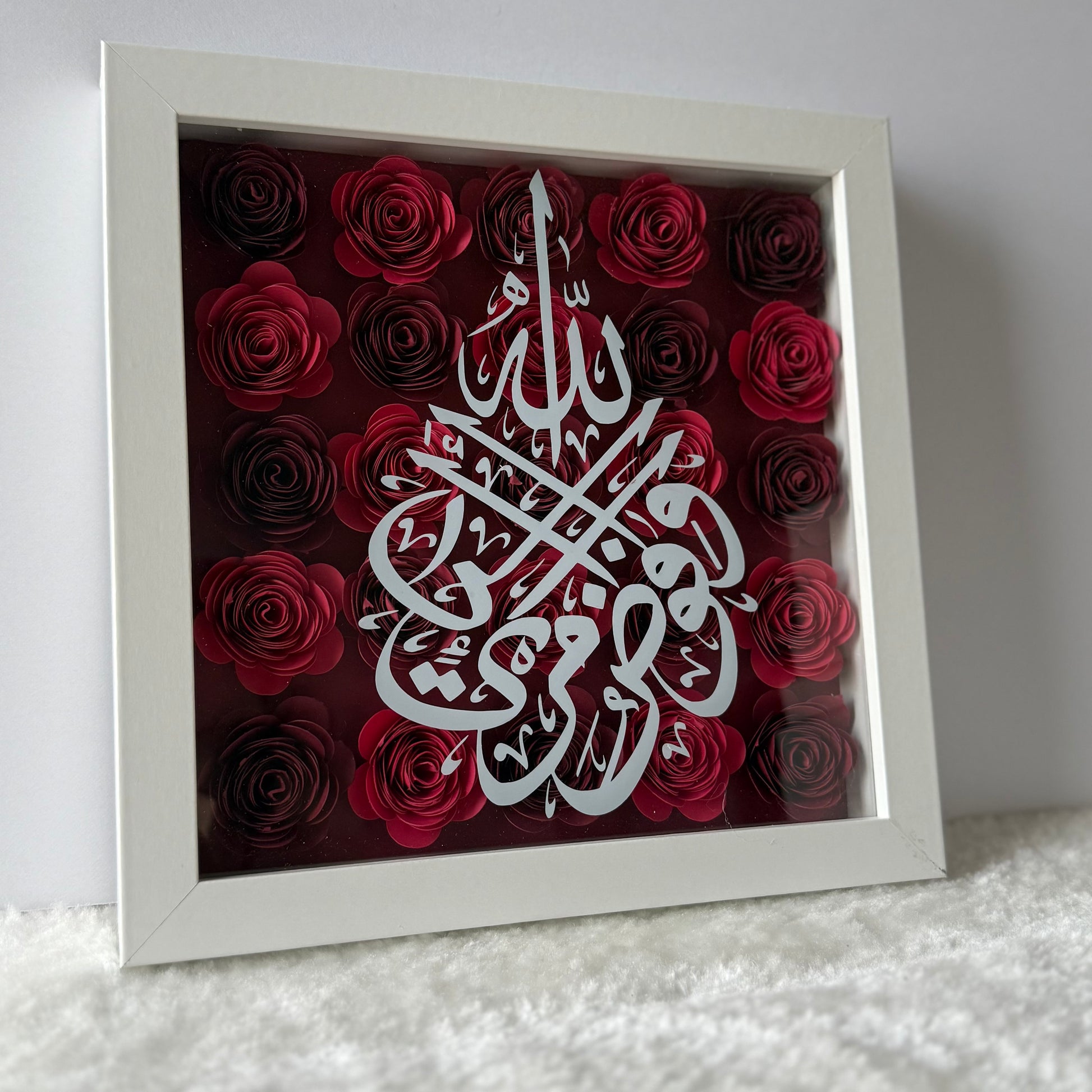 Bring beauty and meaning into your home with our Saroya Arts Flower Boxes — modern décor inspired by traditional Islamic art. Each box features elegant Arabic calligraphy surrounded by hand-placed flowers, creating soft dimension and a refined finish. Lightweight and easy to display, these pieces brighten any space and make thoughtful, heartfelt gifts. Designed with love and intention, Saroya Arts Flower Boxes are made to inspire, uplift, and remind.