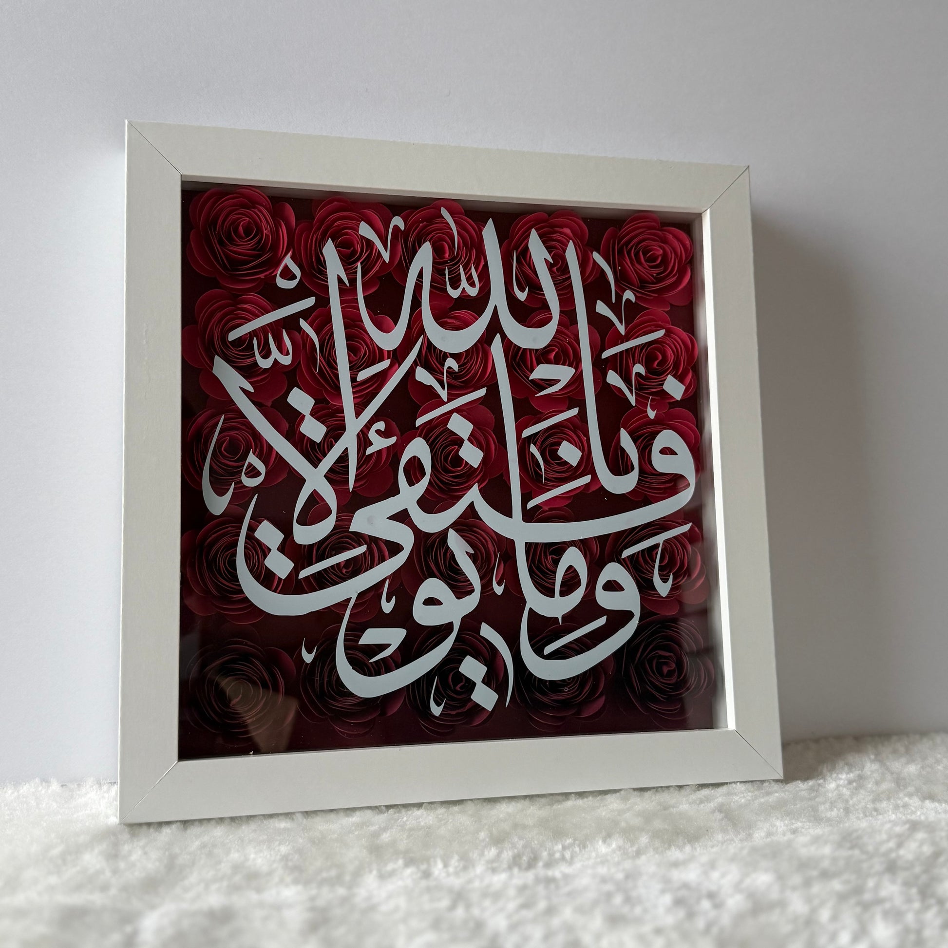 Bring beauty and meaning into your home with our Saroya Arts Flower Boxes — modern décor inspired by traditional Islamic art. Each box features elegant Arabic calligraphy surrounded by hand-placed flowers, creating soft dimension and a refined finish. Lightweight and easy to display, these pieces brighten any space and make thoughtful, heartfelt gifts. Designed with love and intention, Saroya Arts Flower Boxes are made to inspire, uplift, and remind.